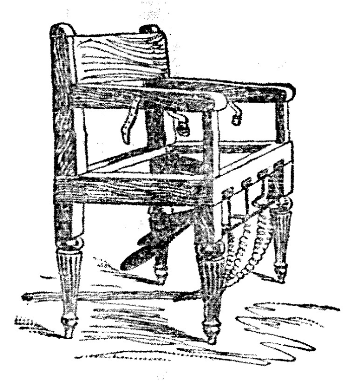 A newspaper’s drawing of what a spanking chair could look like.